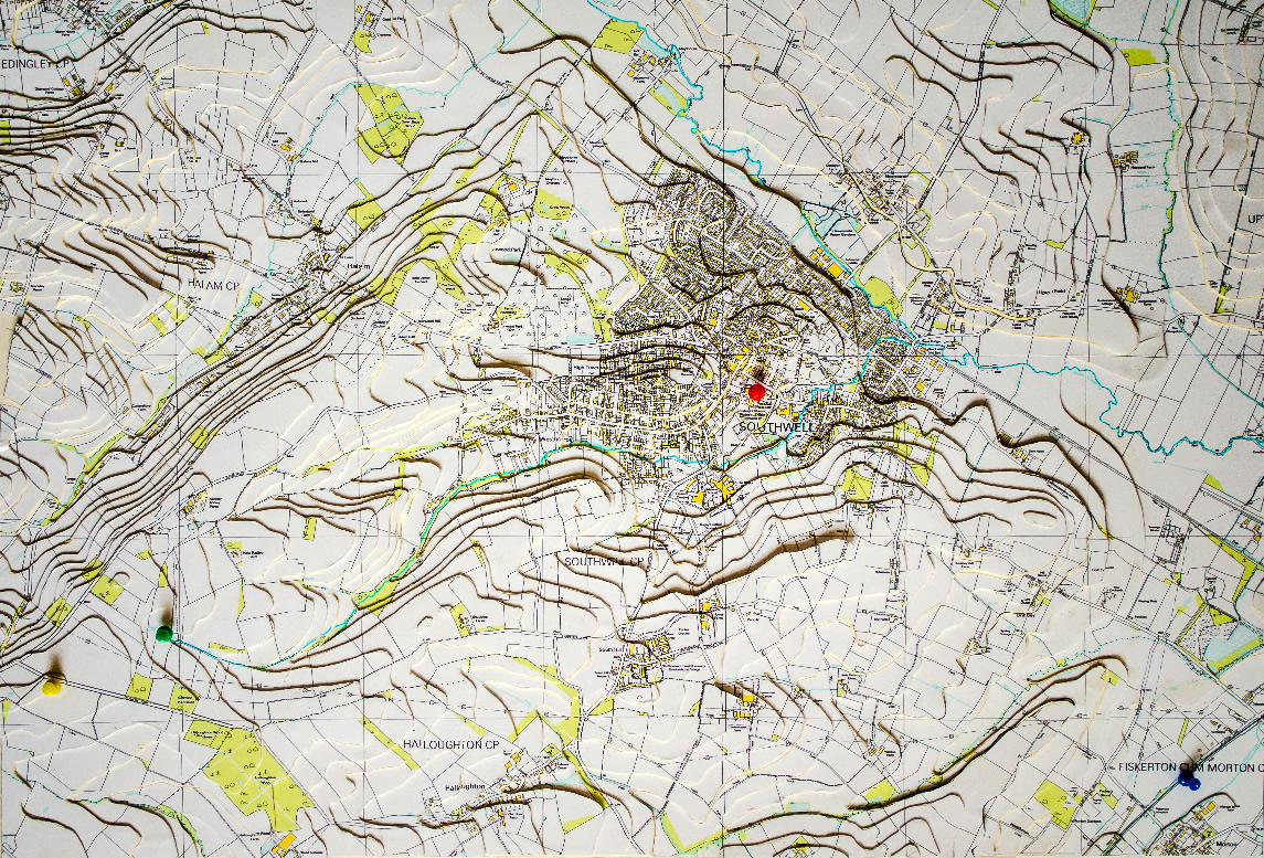 This 3D map created by Kath and Andy Wimble shows just how Southwell sits in a valley with the dumbles that flow into the main water-course – the Potwell Dyke. It also shows the secondary water-courses which flow from Halam Hill and Norwood Park.
