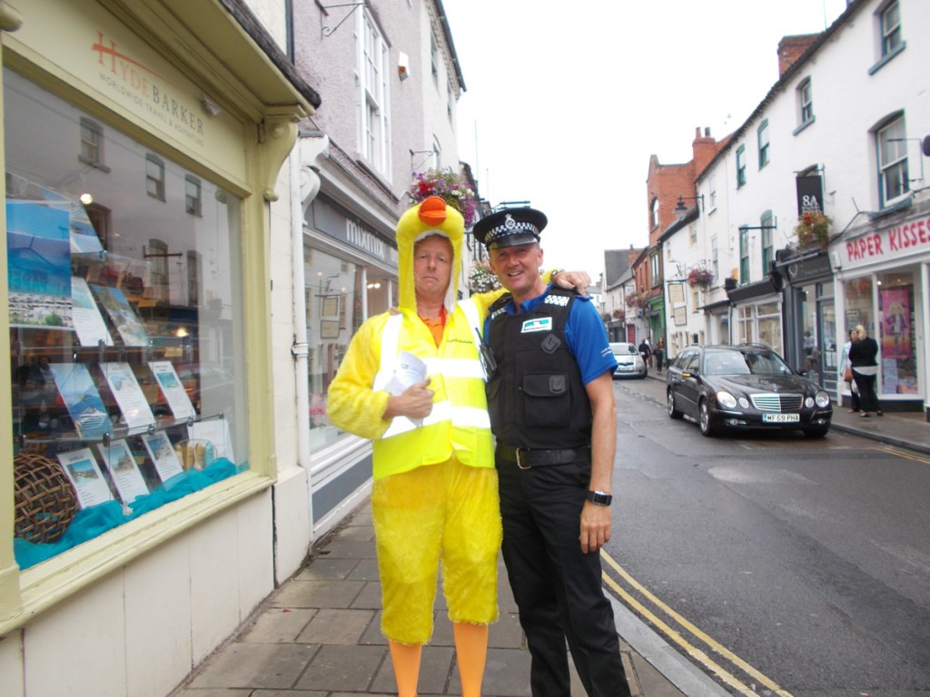PCSO Richard Dunn with our Lion duck promoting the Flood Fest in town