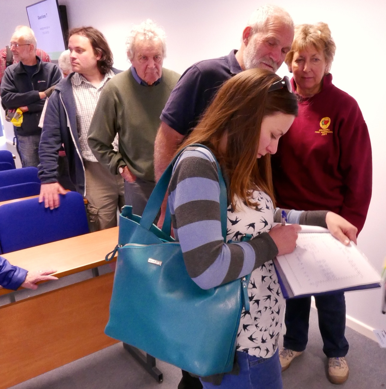 Wardens signing the attendance list and receipt for their kit