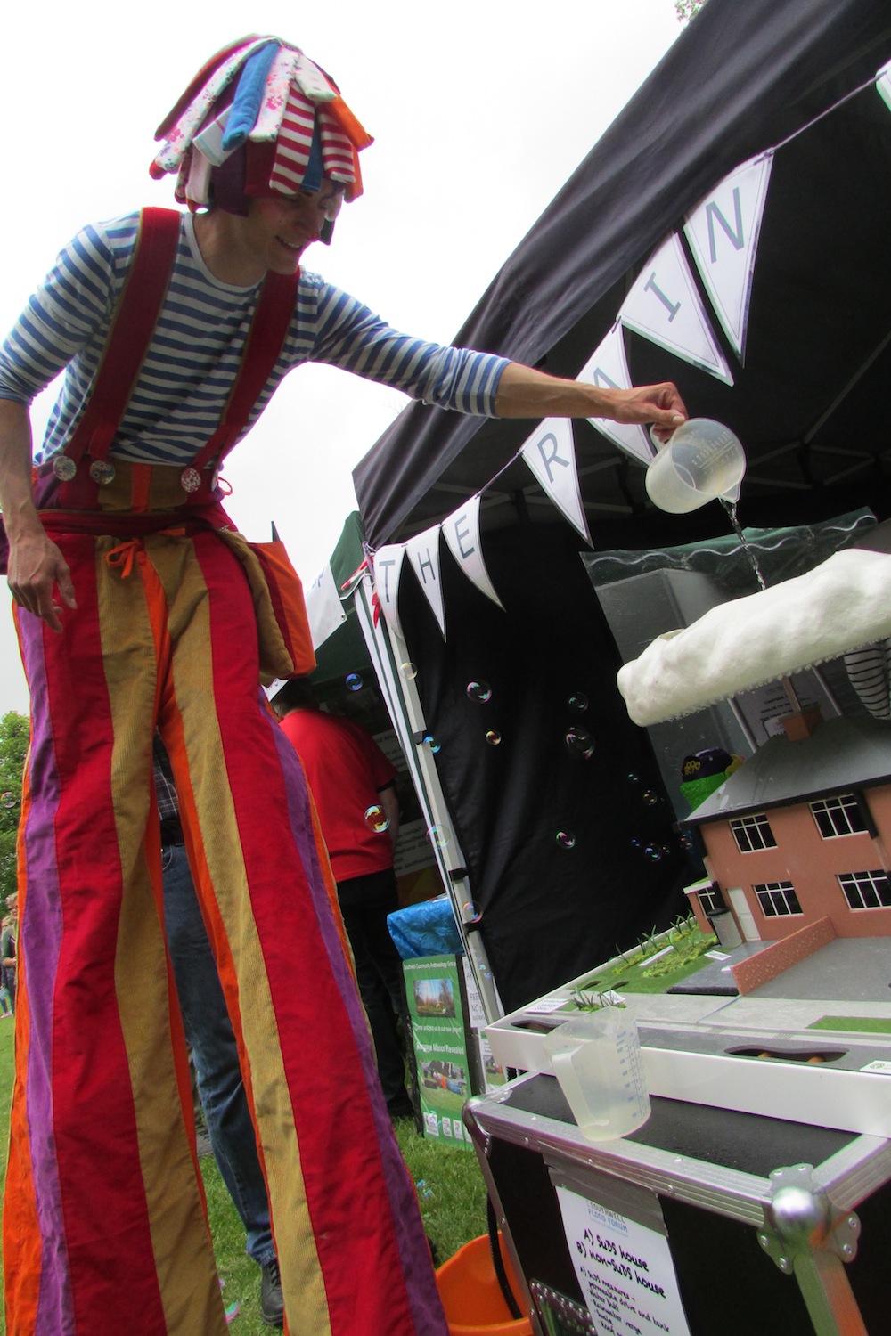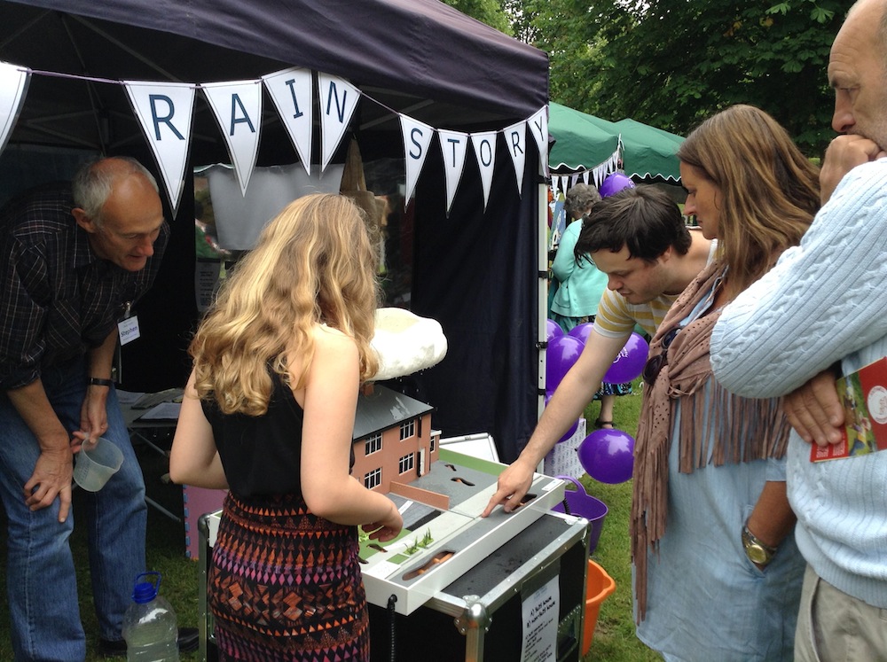 On a warm, dry Saturday afternoon at the Fun Day on the Burgage, children and adults alike were interested to make it rain on semi-detached model houses on our ‘The Rain Story’ stall.
