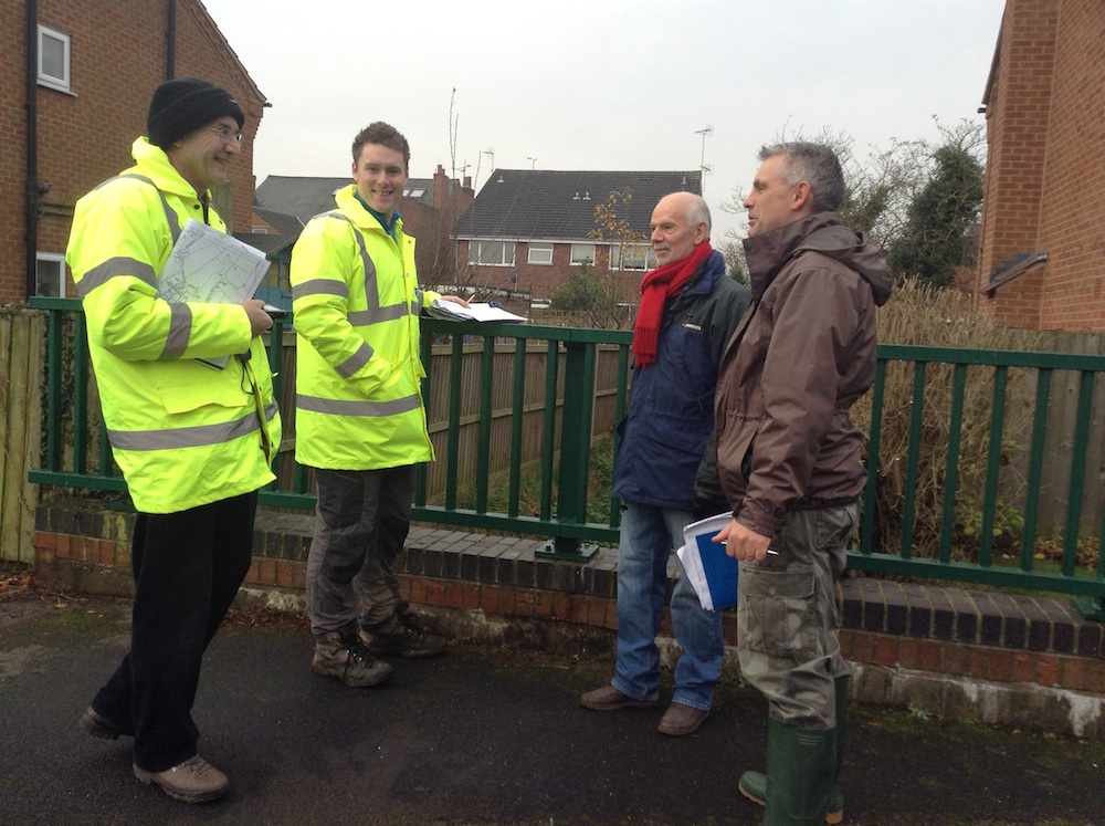 Rob Jordan Co-Chair and John Cook of Southwell Flood Form, Halam Hill Group met URS Flood Consultants Richard James (Hydraulic Modeller) and  Chris Broome (who is undertaking the options assessment and economic appraisal)