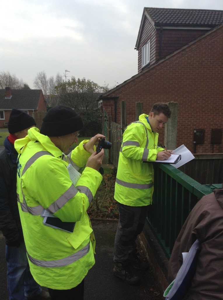 They walked round the northern end of town to examine and log the details of how and where the floodwaters affected properties, infrastructure and watercourses on 23rd July, 2013.