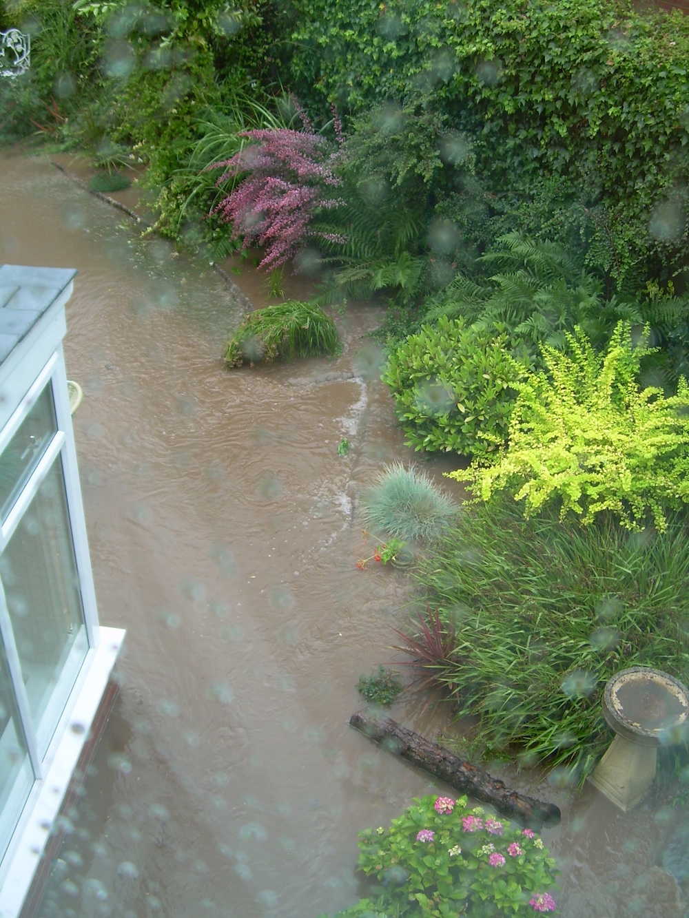 Glenfields » Garden backing onto Humberstone Rd. Floodwater came through hedge boundary – a raging torrent approx 20 inches deep along the recently constructed footpath Posted 8:55 am by Jacky Huson.